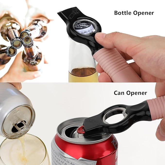 - 2 IN 1 BOTTLE OPENER:Not only open pop tops but also bottles. The Bottle opener opens bottles of beer, and any other bottle with pry off crowns caps. Can tab opener for soda, beer, pop top lids and any other canned beverage.