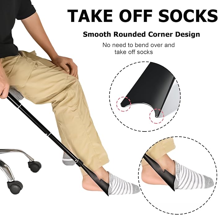 - Metal Material:Our shoehorn long-handle are made of sturdy aluminum alloy, which is sturdy, will not deform or rust.Each edge of the aluminum alloy shoe corner is polished smooth to prevent socks and knitwear from getting stuck
