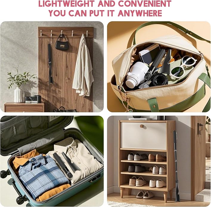 - Telescopic Handle: This shoe horn long handle has a telescopic handle with a maximum length of 37 inches and a minimum length of 14 inches. It is suitable for people of different heights, and you can easily put on your shoes whether standing or sitting without bending over