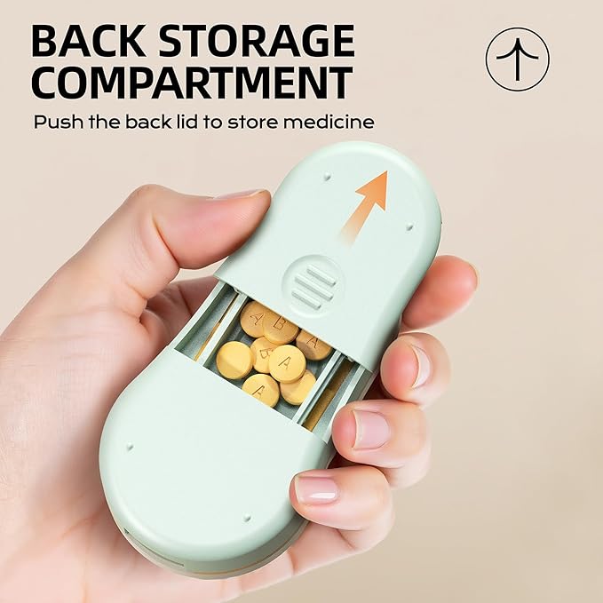 - 【2-in-1 Pill Cutter & Storage Case】This food-grade tiny pill cutter splitter comes with 2 built-in storage compartments, which can store pills. Its compact, portable design makes this all-in-one pill cutter perfect for travel, business trips, office use, and daily life