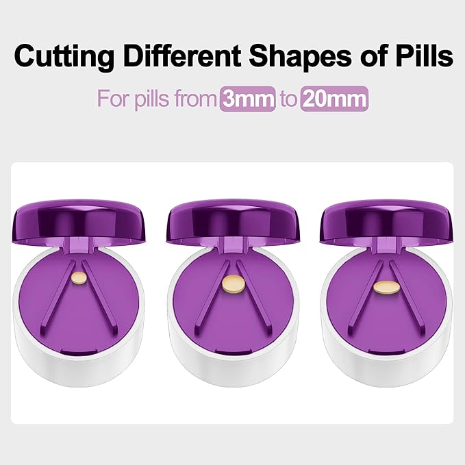 - 【Clear Cut】Our pill crushers 301H stainless steel blades are very sharp to ensure cleaner cuts for tablets and pills, and the V-shaped design holds pills from 3mm to 20mm securely in place, When using for the first time, please pay attention to the position of the top blade to avoid accidentally cutting your fingers