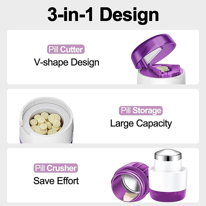 - 【3 in 1 Design】This pill crusher with pill cutter and pill storage compartment combines crushing, cutting and storage in one unit to meet your multiple needs. It is a multifunctional pill crusher for elderly and pets