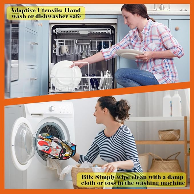 - Easy Cleaning in Minutes: The built up utensils for adults sets are dishwasher safe for hassle-free, sanitary cleaning. The adult bib with a easy-wipe surface can be quickly hand-washed or machine-washed, making post-meal cleanup a breeze