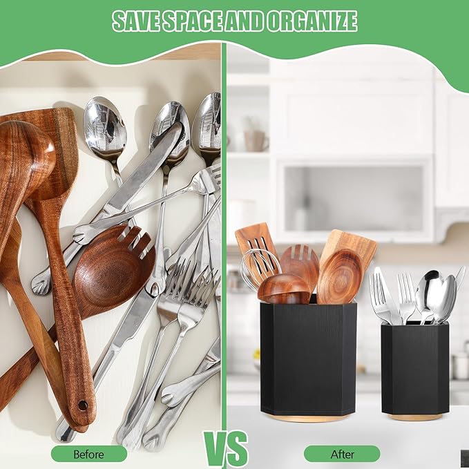 - Durable and Easy to Maintain: crafted from sturdy wood, these kitchen utensil holders resist tipping, rusting, and breaking; The smooth surface can be cleaned with a damp cloth, keeping them looking fresh and new with minimal effort