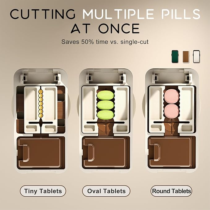 - 【No-Crush Blade Tech】Hidden stainless steel blade cleanly cuts oval/large pills without crumbling (even 2.5mg tiny pills); Arthritis-friendly soft-press design