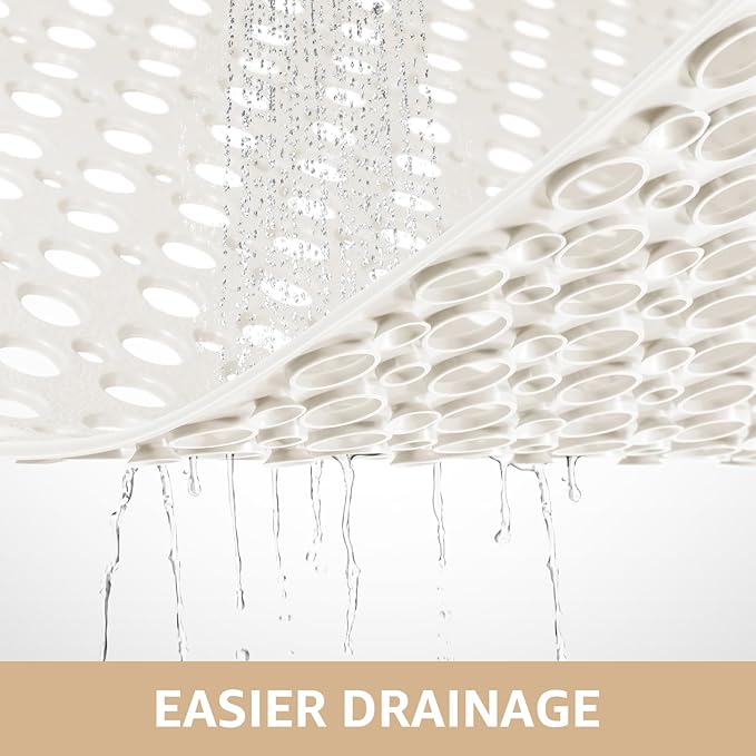Yolife Large Shower Mat, 35 x 24 inch Non Slip Shower Mats for Inside Shower with Drain Holes and Suction Cups for Bathroom, No Odor TPE Shower Floor Mat, White