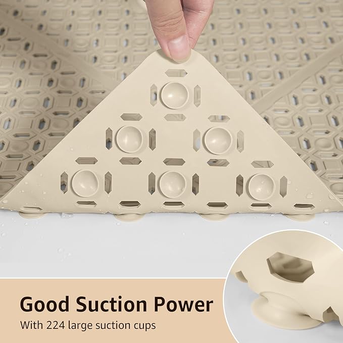 - POWERFUL SUCTION CUPS: With 224 strong suction cups underneath, this shower non slip mat can adhere to the shower floor firmly. ๐๐๐๐: ๐๐ฅ๐๐๐ฌ๐ ๐ฎ๐ฌ๐ ๐ญ๐ก๐ ๐ฌ๐ญ๐๐ง๐ ๐ฎ๐ฉ ๐ฌ๐ก๐จ๐ฐ๐๐ซ ๐ฆ๐๐ญ ๐จ๐ง ๐ ๐ฌ๐ฆ๐จ๐จ๐ญ๐ก ๐ฌ๐ก๐จ๐ฐ๐๐ซ ๐๐ฅ๐จ๐จ๐ซ ( Not recommend for textured or uneven floors )