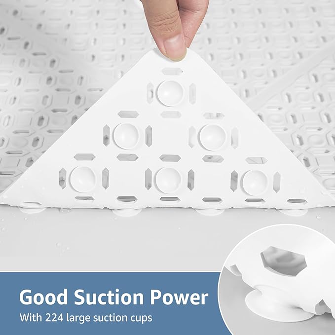 - POWERFUL SUCTION CUPS: With 224 strong suction cups underneath, this shower non slip mat can adhere to the shower floor firmly. ๐๐๐๐: ๐๐ฅ๐๐๐ฌ๐ ๐ฎ๐ฌ๐ ๐ญ๐ก๐ ๐ฌ๐ญ๐๐ง๐ ๐ฎ๐ฉ ๐ฌ๐ก๐จ๐ฐ๐๐ซ ๐ฆ๐๐ญ ๐จ๐ง ๐ ๐ฌ๐ฆ๐จ๐จ๐ญ๐ก ๐ฌ๐ก๐จ๐ฐ๐๐ซ ๐๐ฅ๐จ๐จ๐ซ ( Not recommend for textured or uneven floors )