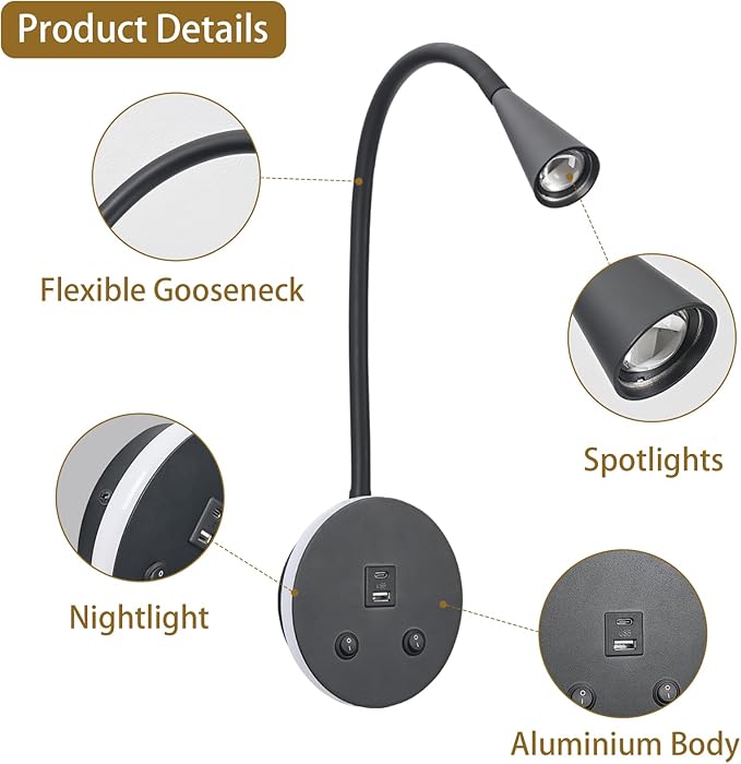 - Plug-in or Hardwired: The two installation methods enables optimal placement in any room, eliminating fixed-location constraints. A flexible gooseneck directs light precisely to reading/work areas regardless of seating/laying positions for ultimate comfort.
