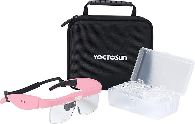 YOCTOSUN Magnifying Glasses with 3 LED Lights, Storage Case, Head Strap and 5 Detachable Lenses 0.75X,1.25X,2.0X,3.0X 4.0X, Magnifying Headset for Close Work, Jewelry, Hobby