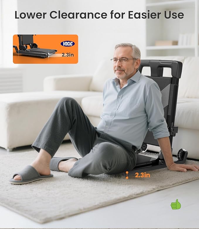 - [Lowered Ground Clearance Design] - The chair lift features a ground clearance of just 2.3 inches, 50% lower than comparable models, making it easier for users to step onto the seat. Ideal for women, seniors, and individuals with limited mobility.