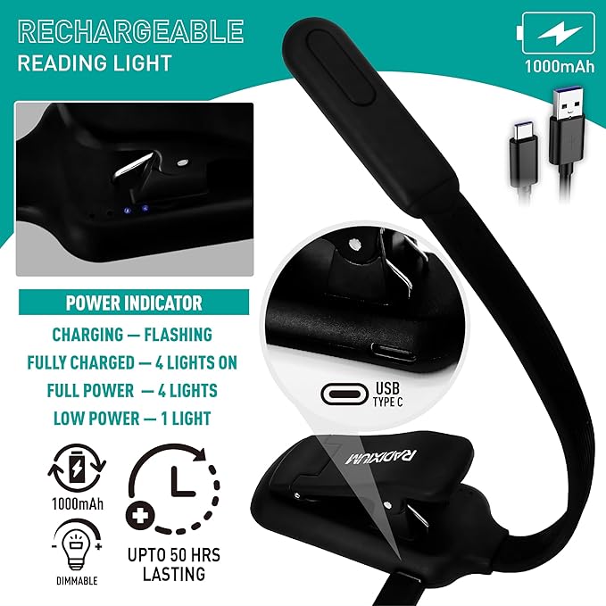 - 50-HOUR BATTERY & USB-C FAST CHARGE: Built-in 1000mAh battery lasts up to 50 hours at low brightness (12hrs high). USB-C charging refills in 3 hours—ideal for travel, camping, or power outages.