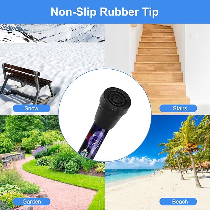 - The tip is made of sturdy TPR anti-slip material, providing great traction and stability; it could be replaced to other types of cane tips to meet various requirements