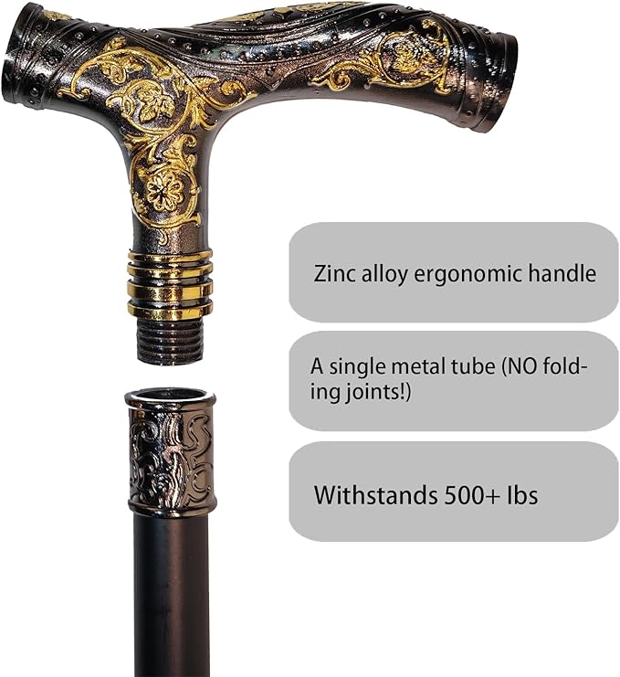 - 【Unbreakable Stability】 This isn’t just a walking cane – it’s a statement of strength and style. Designed for discerning users who refuse to settle for flimsy canes, our all-metal construction delivers unparalleled durability. Crafted from a single solid metal tube (NO folding joints!) and solid zinc alloy handle, this cane withstands 500+ lbs with zero wobble. No rust, no creaks, no loose parts–ever.