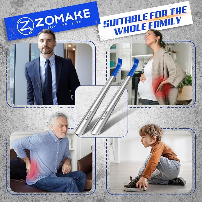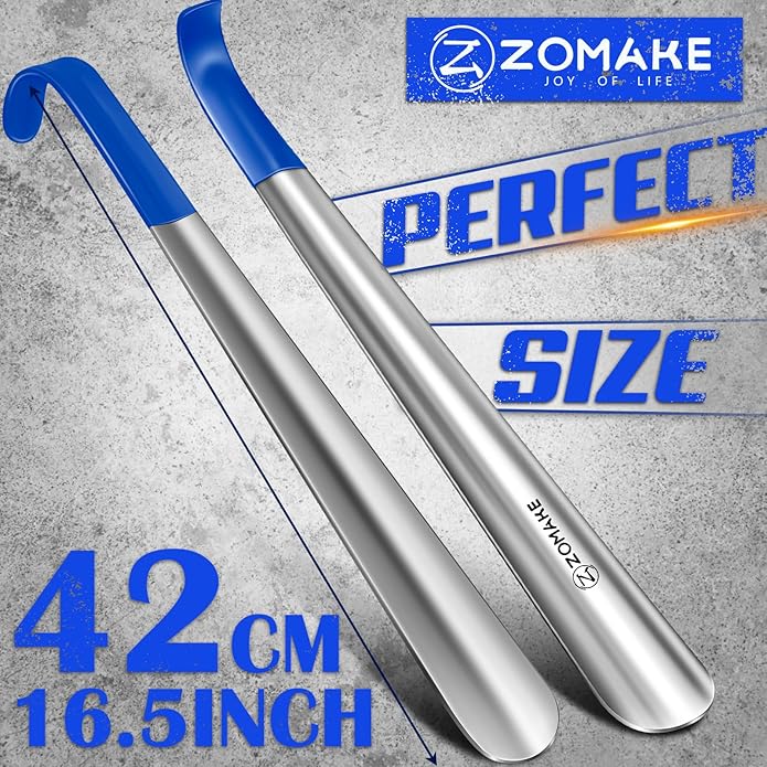 - 【ZOMAKE Metal Shoehorns Have Won Many Praises】Over 50,000 ZOMAKE metal shoe horn units accompany people yearly, becoming indispensable. They’re shoe spoons for the elderly, a handy shoe wearing stick, and a trusted shoe horn for boots—this long handled shoe horn embodies love and happiness, loved globally.