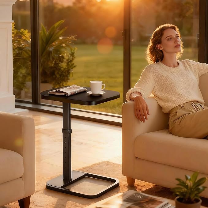 - ✔️ Easily Adjustable Height Levels: The sofa table offers 9 height settings, adjustable from 19 to 30 inches, letting you customize it perfectly for eating, working, or relaxing.