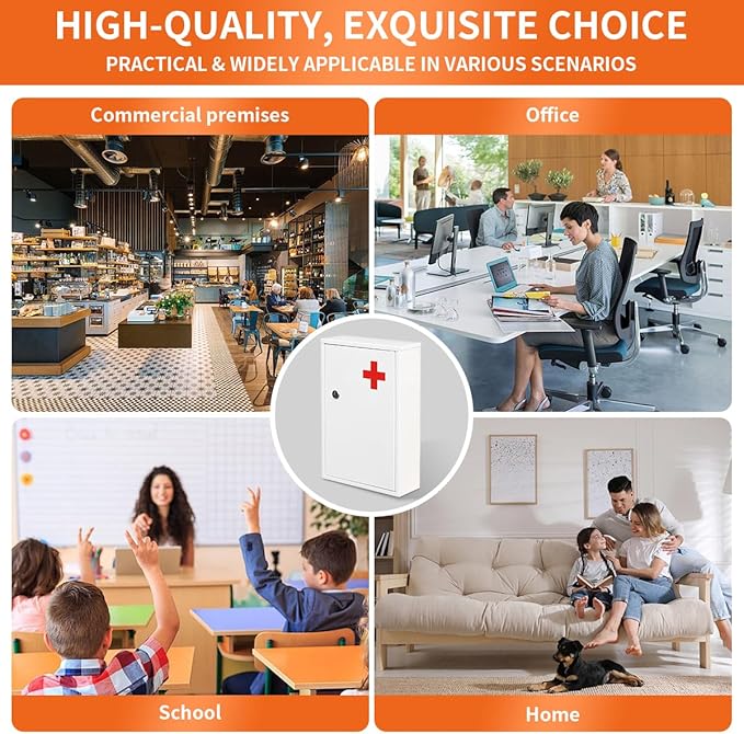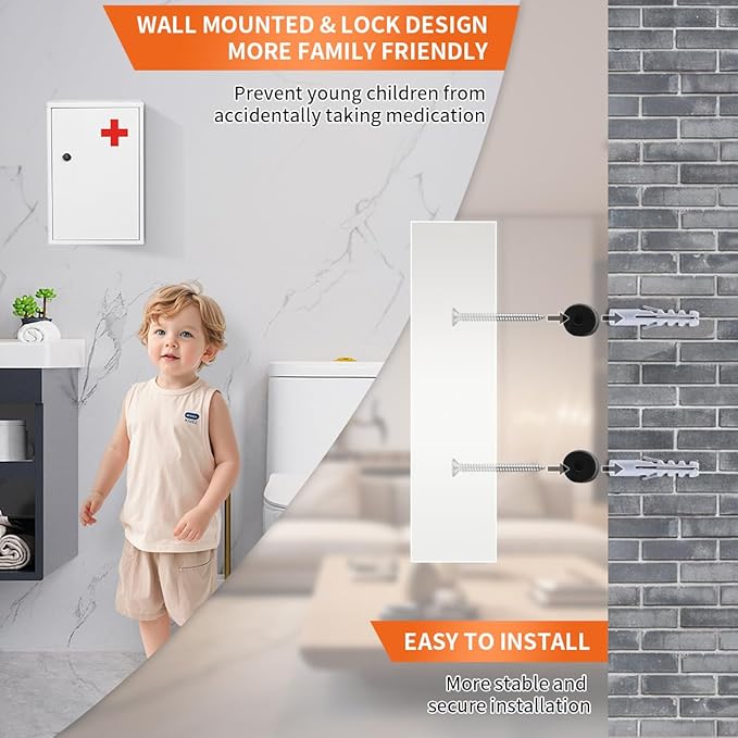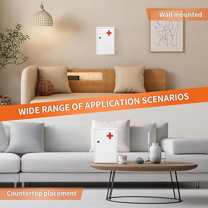 - EASY TO INSTALL & VERSATILE USE:Equipped with installation accessories and keys, it is very easy and convenient to install. Perfect for bathrooms, schools, offices, and nursing stations, this first aid cabinet is a reliable organizer for both personal and professional use, ensuring you always have quick access to medicines and emergency supplies.