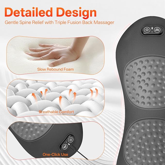 - Six Core Benefits for Back Care – This lumbar support pillow combines six major advantages: heat therapy, dynamic massage, adjustable support, ergonomic design, contour fit, and soft touch. Just 30 minutes a day helps relax your body and reduce lower back strain