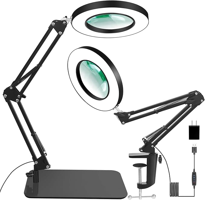 - 2-in-1 Craft Light: This magnifying glass with light boasts a sturdy clamp that easily attaches to any tabletop or workbench. Enjoy the flexibility of using it as a stand, ensuring comfort whether you're working on a bench, desktop, workbench, tabletop, or in a lab.