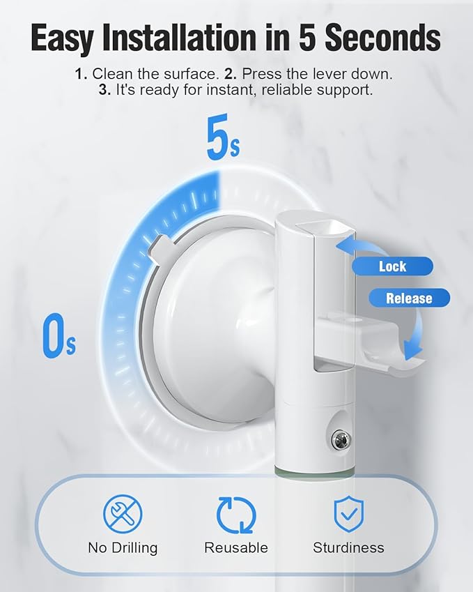 - Effortless Suction Installation & Portability: Install or remove this shower handles for elderly suction in seconds using simple flip-down latches—no drilling, screws, or tools required; Its portable design allows for quick relocation, making it a perfect solution for travel or temporary needs without damaging walls; It's a hassle-free device for enhanced safety wherever you go