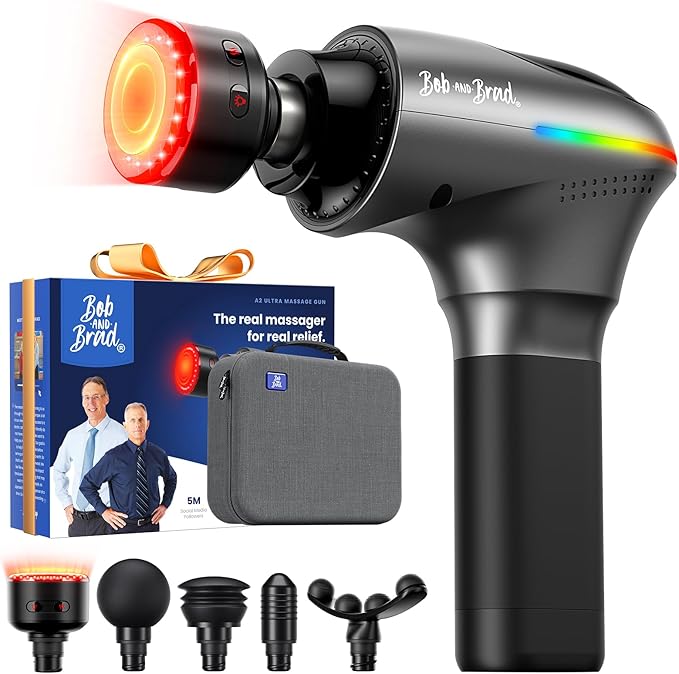 BOB AND BRAD A2 Ultra Massage Gun with Red Light Infrared Heat Head, FSA Eligible/HSA Eligible, Pro Percussion Massage Gun Deep Tissue for Fast Pain Relief, Handheld Sore Muscle Massager for Back Leg