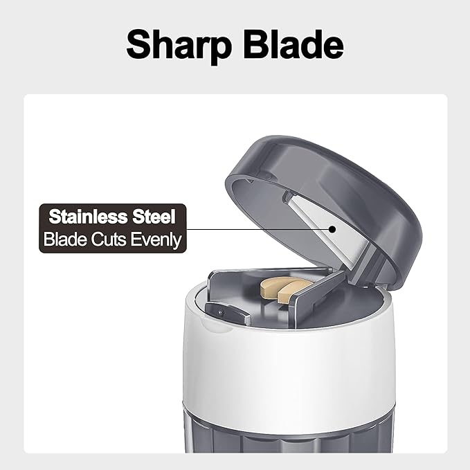 - 【Clear Cut】Our pill crushers 301H stainless steel blades are very sharp to ensure cleaner cuts for tablets and pills, and the V-shaped design holds pills from 3mm to 20mm securely in place, When using for the first time, please pay attention to the position of the top blade to avoid accidentally cutting your fingers