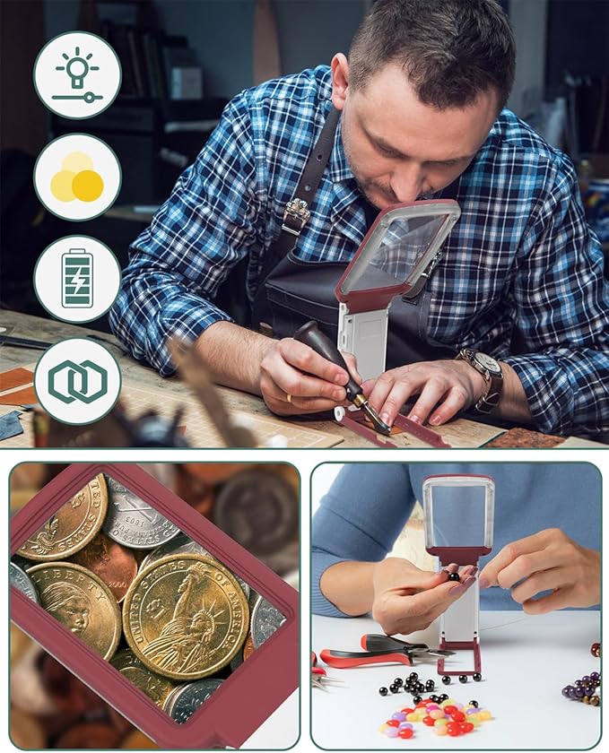 - Versatile Folding Design: Enjoy the flexibility of a handheld or desktop magnifying glass! Our innovative folding design lets you easily switch between using it in hand or setting it up on a table, making it perfect for any task.