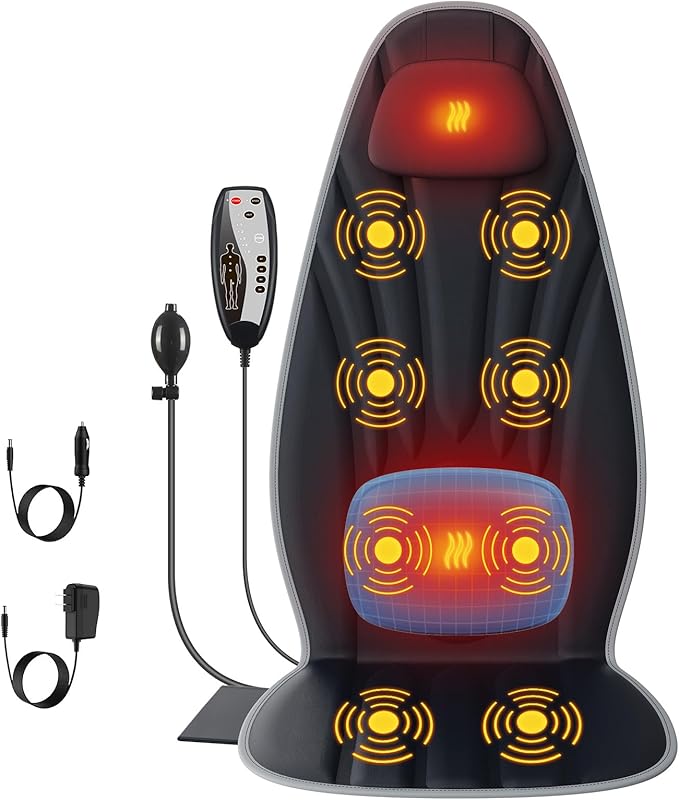- Multiple functions: This massage pad for chair is equipped with 4 massage modes, 3 massage intensities, and 2 heating intensities. The equipped manual controller and manual inflation balloon allow you to adjust to the ideal usage mode