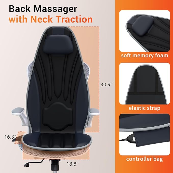 - Massage Seat Cushion with Lumbar Support:The back massager is quipped with lumbar support and heating elements on the back, you can adjust the appropriate size and temperature according to your personal needs