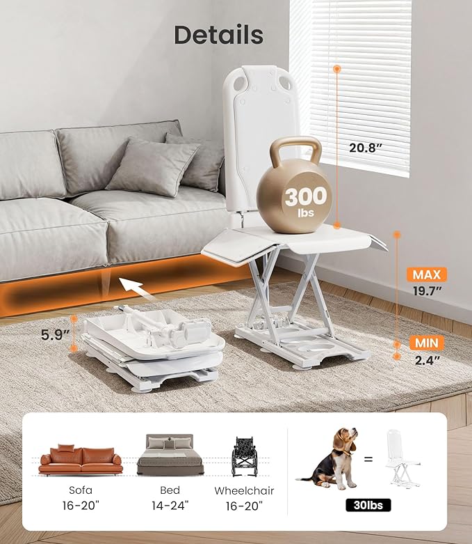 - [2-in-1 Design Design for Smooth Transitions] - Fits seamlessly into real-world living spaces: its height is adjustable from 3.4" to 19.5", matching sofas, beds, or bathub. The wide seat makes safe transfers between surfaces easier, cutting down on fall risks when standing up or sitting down.