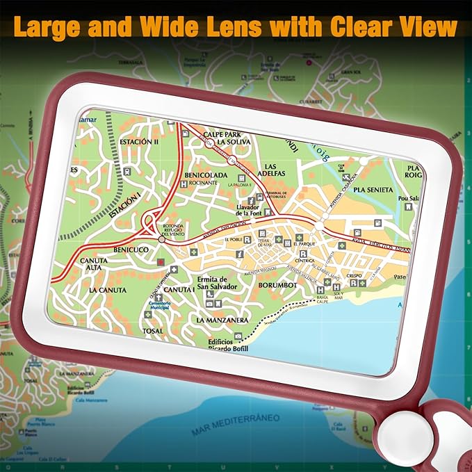- Versatile and Durable Square Lens: The large, scratch-resistant rectangular lens is perfect for various tasks, whether reading a newspaper, viewing documents, or engaging in hobbies like needlework and crafts. It eliminates the edge distortion in round lenses, making it great for viewing small details in coins, stamps, electronics, and photos