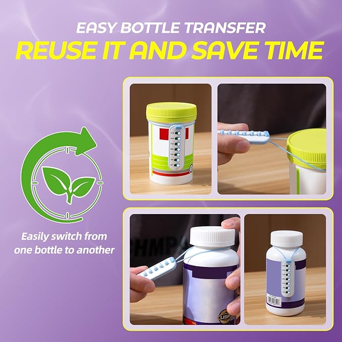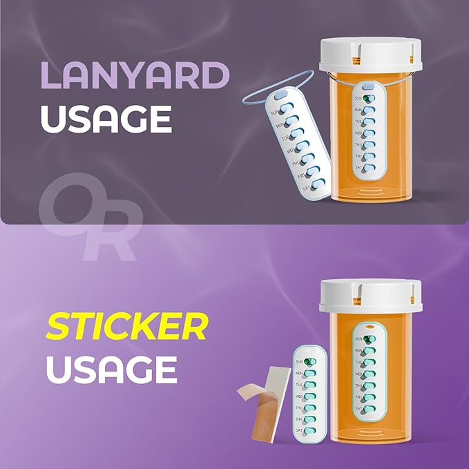 Odaro 6 Pack Pill Reminder, Lanyad or Sticker Pill Tracker, Work with Most Bottles, Reusable Medication Tracker Replacement of Vitamin Weekly (7 Day) Medicine Organizer