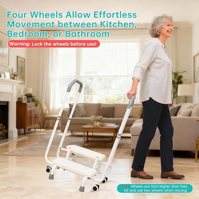 - Versatile Companion for Any Scene: From bedside to bathtub, cabinet access, or RV camping, this stool supports seniors anywhere. It’s the all-in-one helper that simplifies life, empowering independence and ease for those with limited mobility—wherever the day takes you.