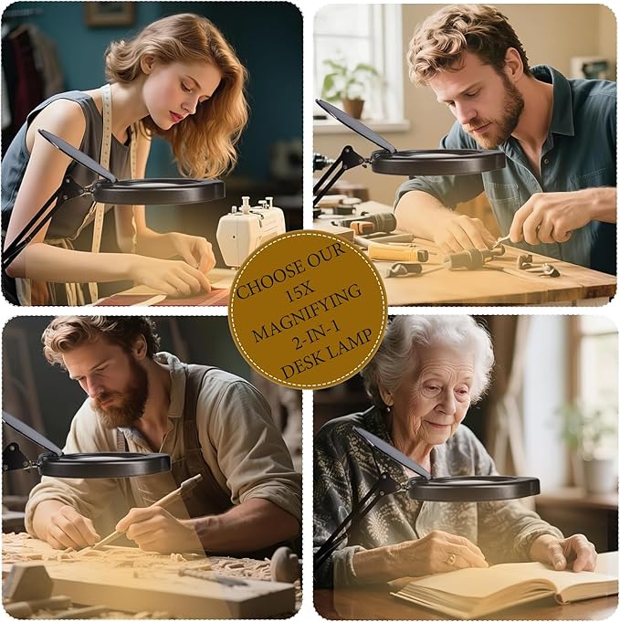 - 15X Crystal-Clear Magnification – The 4.3" real glass lens delivers a distortion-free 15X zoom—ideal for sewing, model making, coin collecting, or reading. A gift that truly makes life easier for those with low vision or detail-driven hobbies.