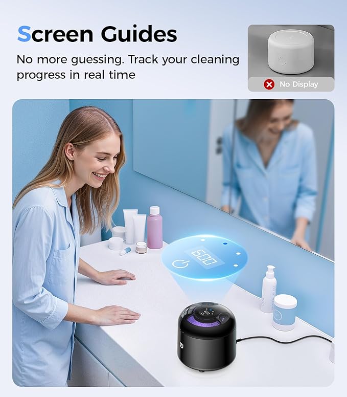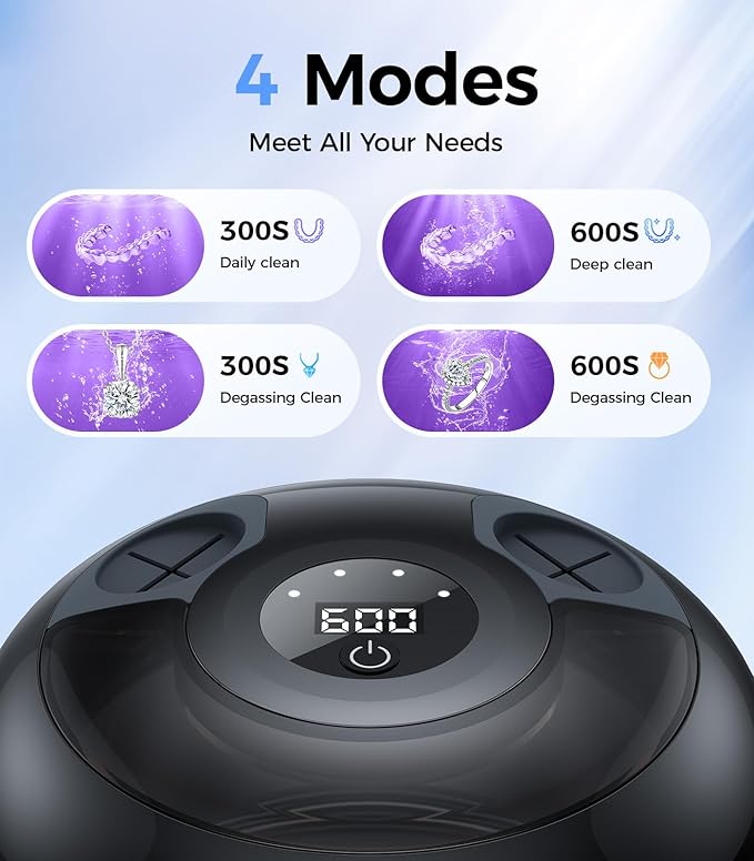 - Retainer Cleaner with No Brushing Needed: This retainer cleaner machine is designed for daily cleaning of retainers, aligners, and oral appliances. As a reliable retainer cleaner, it uses ultrasonic technology to deliver gentle 25W, 48kHz cleaning that removes buildup from surfaces and hard-to-reach areas without brushing or abrasion.