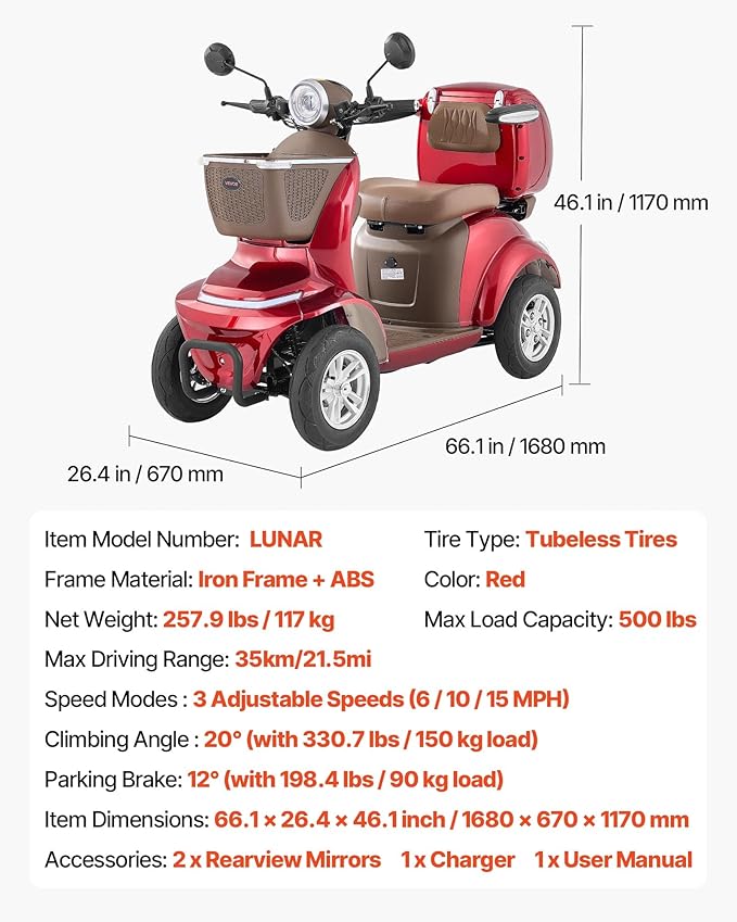 - ULTIMATE COMFORT & AMPLE STORAGE: Designed for all-day comfort. The plush, backrest-equipped seat offers spacious legroom, while the flip-up armrests make getting on and off a breeze. Stay organized on the go with a built-in under seat and a large front basket, and a large, lockable rear trunk—perfect for securing your groceries, purse, or personal items.