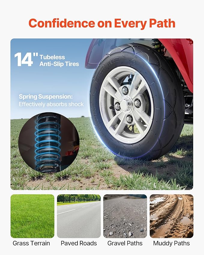 VEVOR Heavy Duty 4-Wheel Mobility Scooter, Powerful 1000W Brushless Motor, 500 lbs Capacity, 21.5 Miles Long Range, All Terrain Mobility Scooter with Lockable Trunk for Seniors & Adults