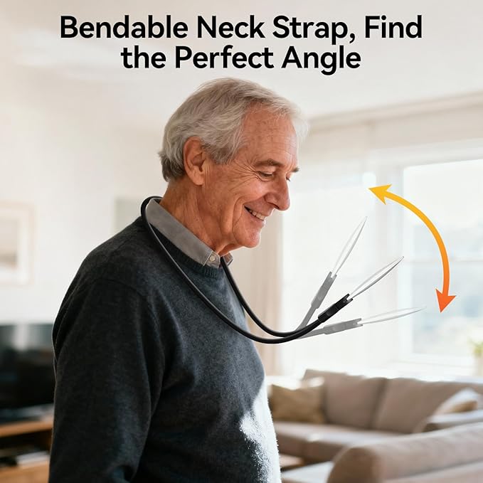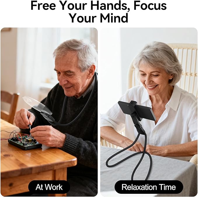 - Free Your Hands & Focus Your Mind: Convenience with this neck-hanging design. Simply hang it around your neck, adjust the flexible hose, and enjoy. It securely holds the reading magnifying glass, allowing you to read, sew, or use your device comfortably for hours without needing to hold it