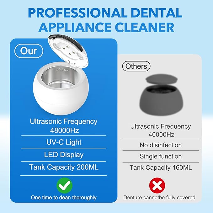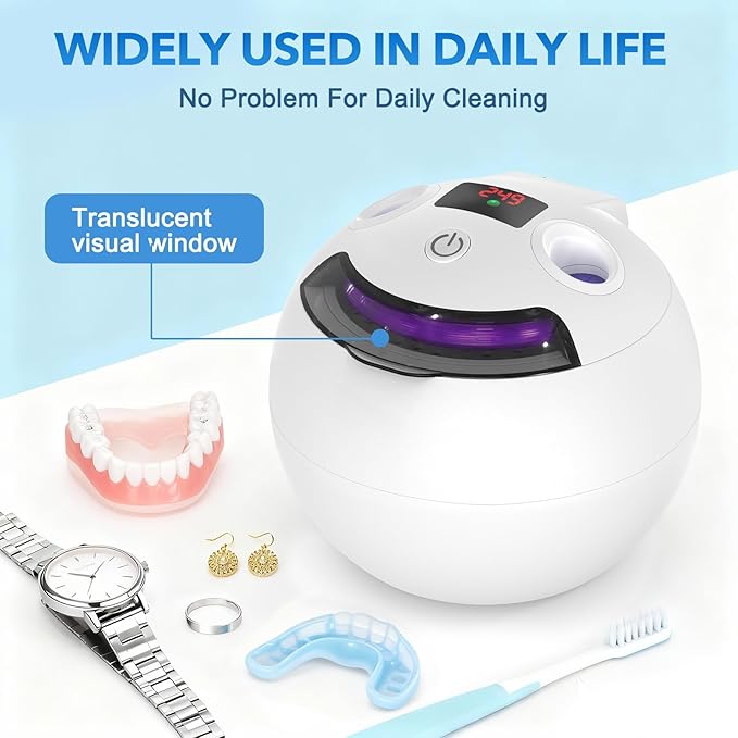- 【Professional Ultrasonic Cleaning Technology】Our ultrasonic cleaner uses 48kHz high frequency sound waves to generate millions of micro-bubbles that remove stains and odors from retainers, dentures, braces and jewelry. Gentle on fragile items, powerful on dirt - great for everyday use. Always use cold water for better cleaning results