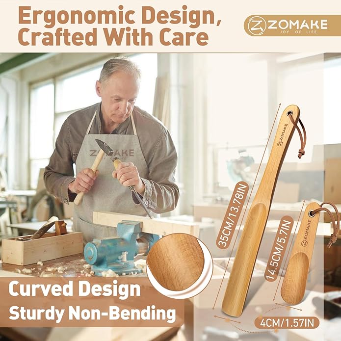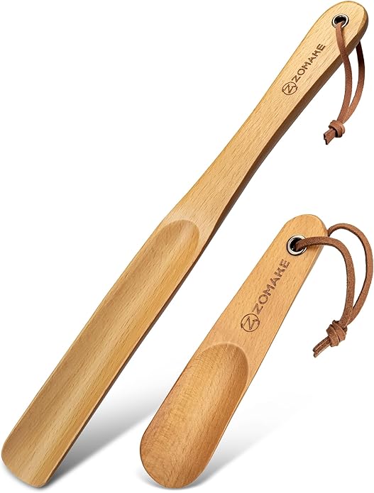 - 【ZOMAKE: A Trusted Brand】This product is a reliable wood shoe spoon, designed to simplify daily shoe-wearing with user-friendly details. The shoe spoon long handle is crafted to fit the hand comfortably, ensuring no awkward grips during use. ZOMAKE focuses on balancing functionality and ease of use, so this shoe horn works well for daily home use, travel, and different user groups. It's a practical tool that adds small conveniences to everyday life.