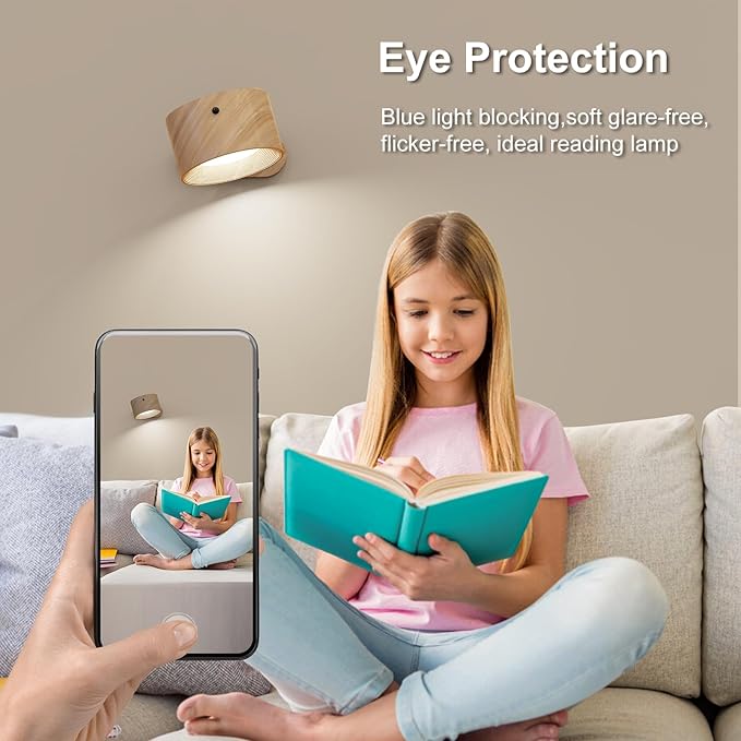 3PACK Romote LED Wall Sconce - Rechargeable Wall Light, 3 Colors & 3 Brightness Levels, 360° Magnetic Rotating Head, Bedside Reading Lamp, Easy Install Battery Operated Lamp Wood