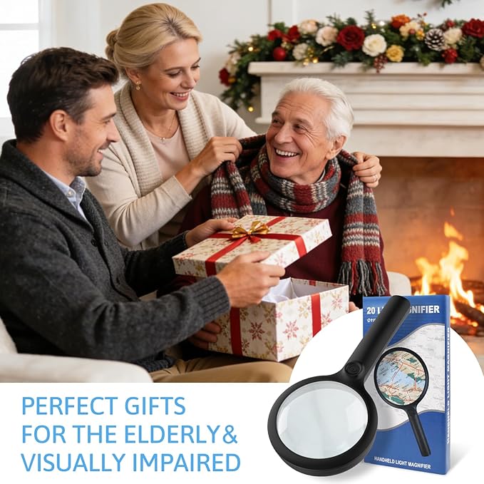 - Ultra Bright 20 LED Lights: Illuminate every detail with the powerful 20 LEDs. This lighted magnifying glass banishes shadows and provides a wide, even field of bright, white light exactly where you need it. Say goodbye to squinting in poor light