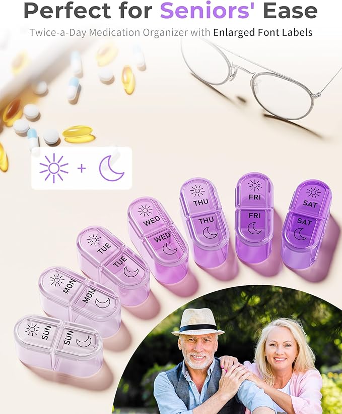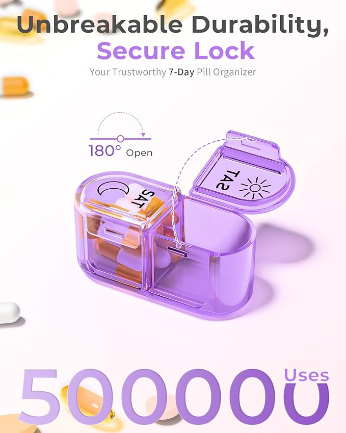 Pill Organizer, Am & Pm Pill Organizer 7 Days, Weekly Pill Case 2 Times a Day, Cute Pill Box 7 Day, Medicine Organizer for Travel, Vitamins, Fish Oils, Supplements (Gradient Pink-Purple)