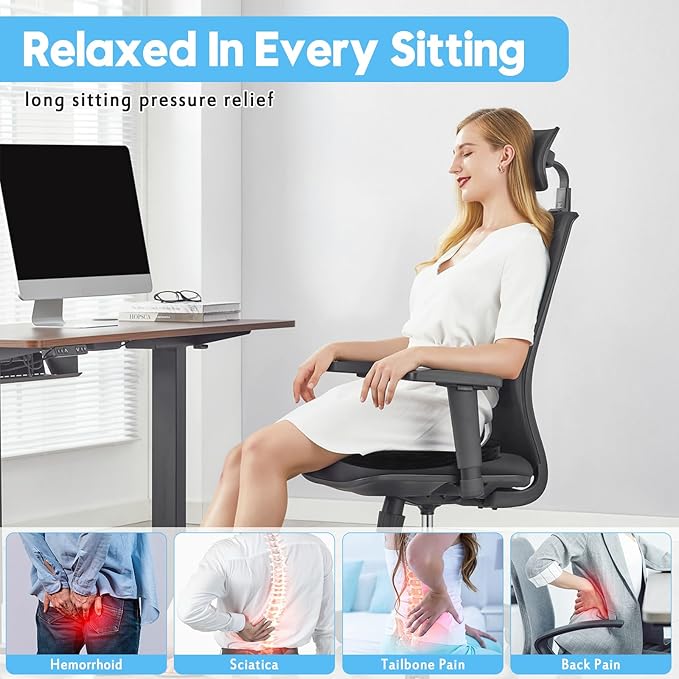 - Experience Lasting Comfort- With our pressure-relief seat cushion, featuring responsive memory foam that conforms to your body's shape to evenly distribute weight and alleviate tailbone and spinal discomfort during extended sitting.