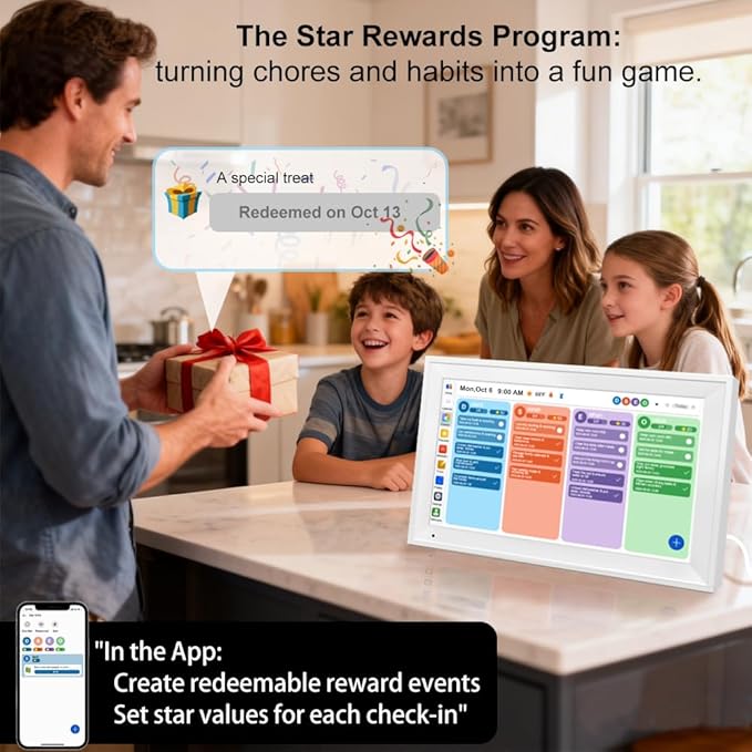 - 【All-in-One Digital Calendar with Smart Connectivity】:Easily connect to Wi-Fi for seamless integration with your smartphone. Sync your phone's calendar, set up household chores, manage to-do lists, and create meal plans—all from one intuitive device.