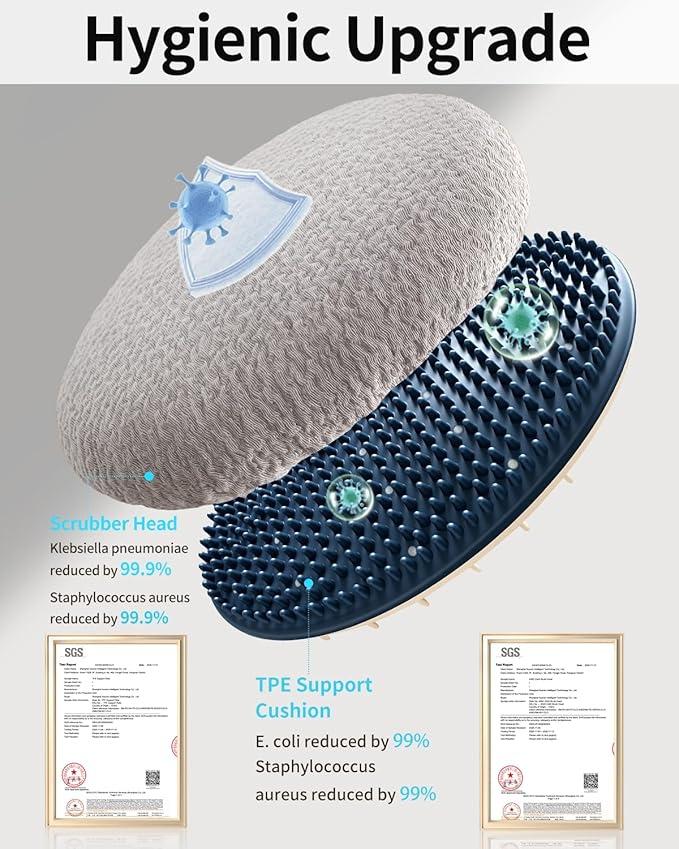 - ✅【TPE Cushion & Hygienic Protection】Enjoy a gentle massage while the soft TPE pad buffers exfoliation. Plus, both fabric and pad have been tested by SGS for enhanced hygiene, helping your body scrubber stay fresh and odor-resistant.