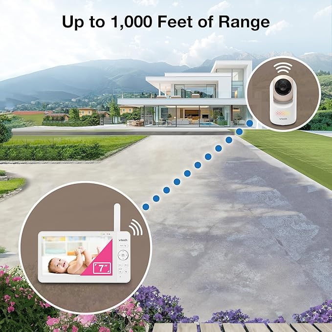 VTech Video Baby Monitor with 7" Color LCD Screen, Rechargeable Battery, Video Streaming, Audio Streaming, Pan-Tilt-Zoom, Touch Multi-Color Night Light, Two-Way Talk, Long Range: Advanced Max Tan