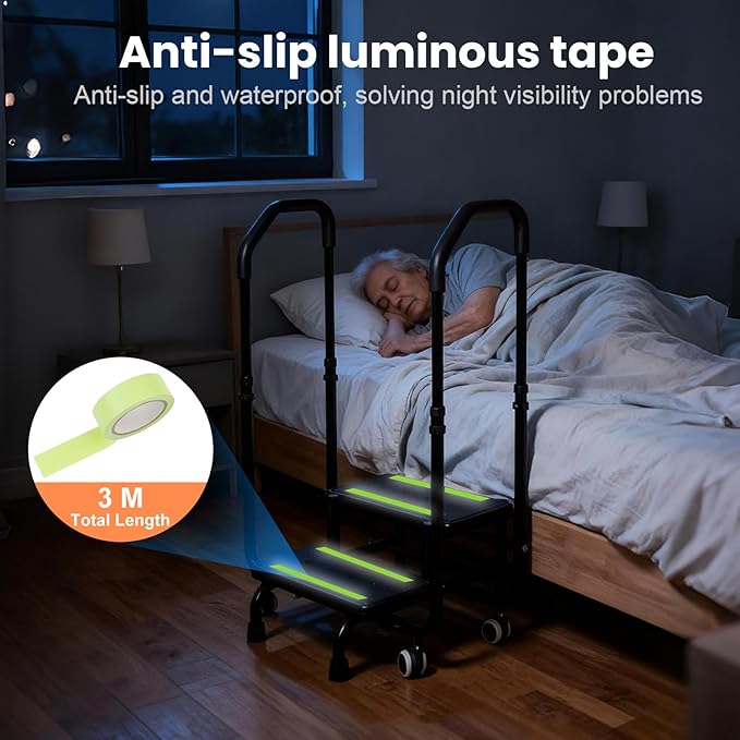 - 【Lifetime Support】:This step stool with handle for elderly includes a 10-foot long non-slip glow-in-the-dark strip, making it easy to use at night. TUAJYUJ offers lifetime dedicated service for our bed steps for elderly. If you have any questions, please contact us—we are committed to resolving all your concerns and ensuring your satisfaction!