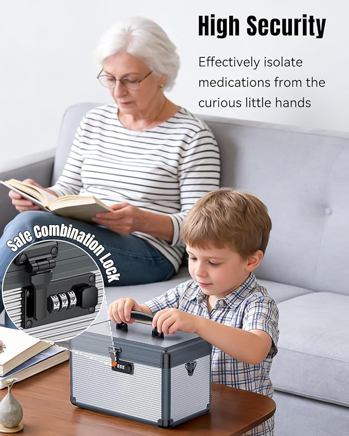 - Reliable Combination Lock: No unauthorized access! The 3-digit code lock on the medication lock box provides 1,000 possible combinations. Easily set or update the code at any time, guaranteeing exclusive control and keeping the medicines properly stored