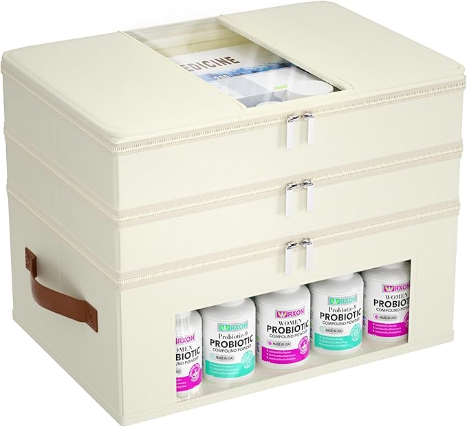 3-Tier Medicine Cabinet Organizer, Fabric Medicine Organizer for Cabinet with Leather Handle, Medicine Storage Box for First Aid, Organizers and Storage Home Must Haves (Beige)